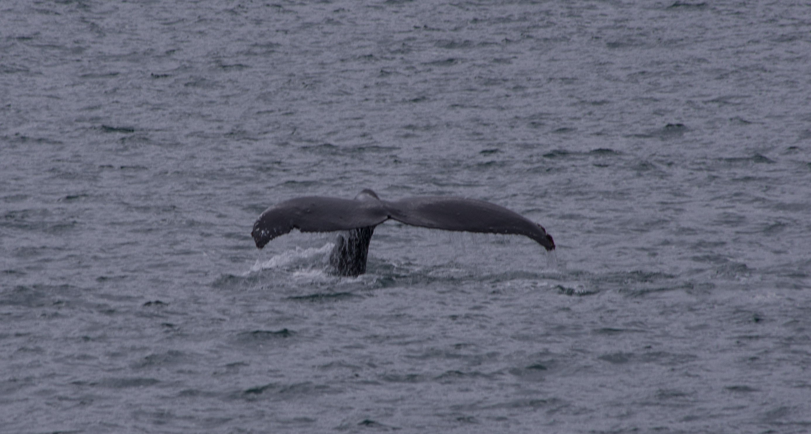 The trip was narrated by a lively, passionate park ranger that seemed to be immune to the freezing temperatures as she walked all around the boat in her short-sleeve uniform. She was excellent and later in the trip brought us a blanket to prevent us from turning into popsicles on the way back as we sat on the empty top deck, too sea sick to go down below. As we got out of Resurrection bay and into the open water the sea became rough. The sky became overcast although it never rained and the wind was really cold… we FROZE. Looking through the camera lens as the boat was moving, waiting for a whale to make an appearance did not help the sickness. We both took Dramamine before boarding but it had no effect.