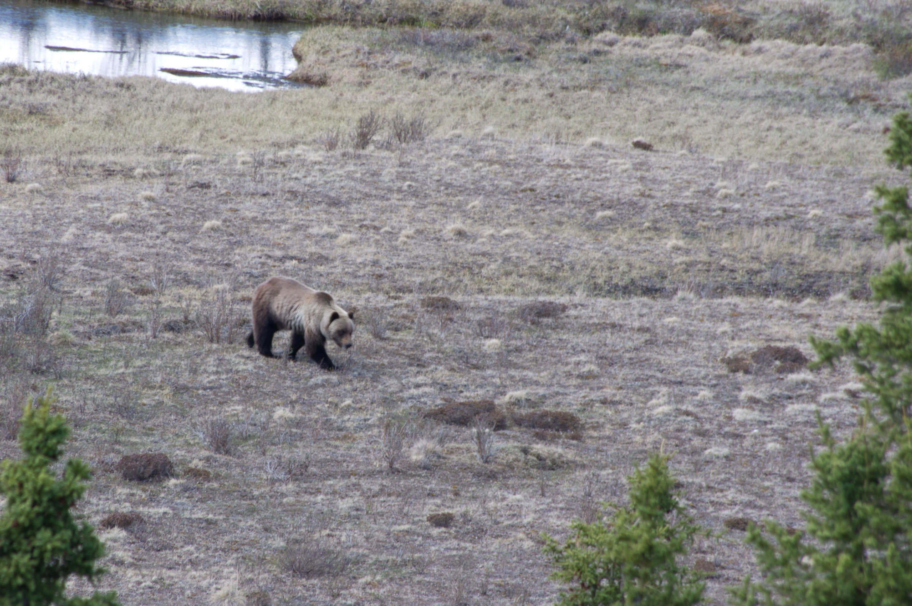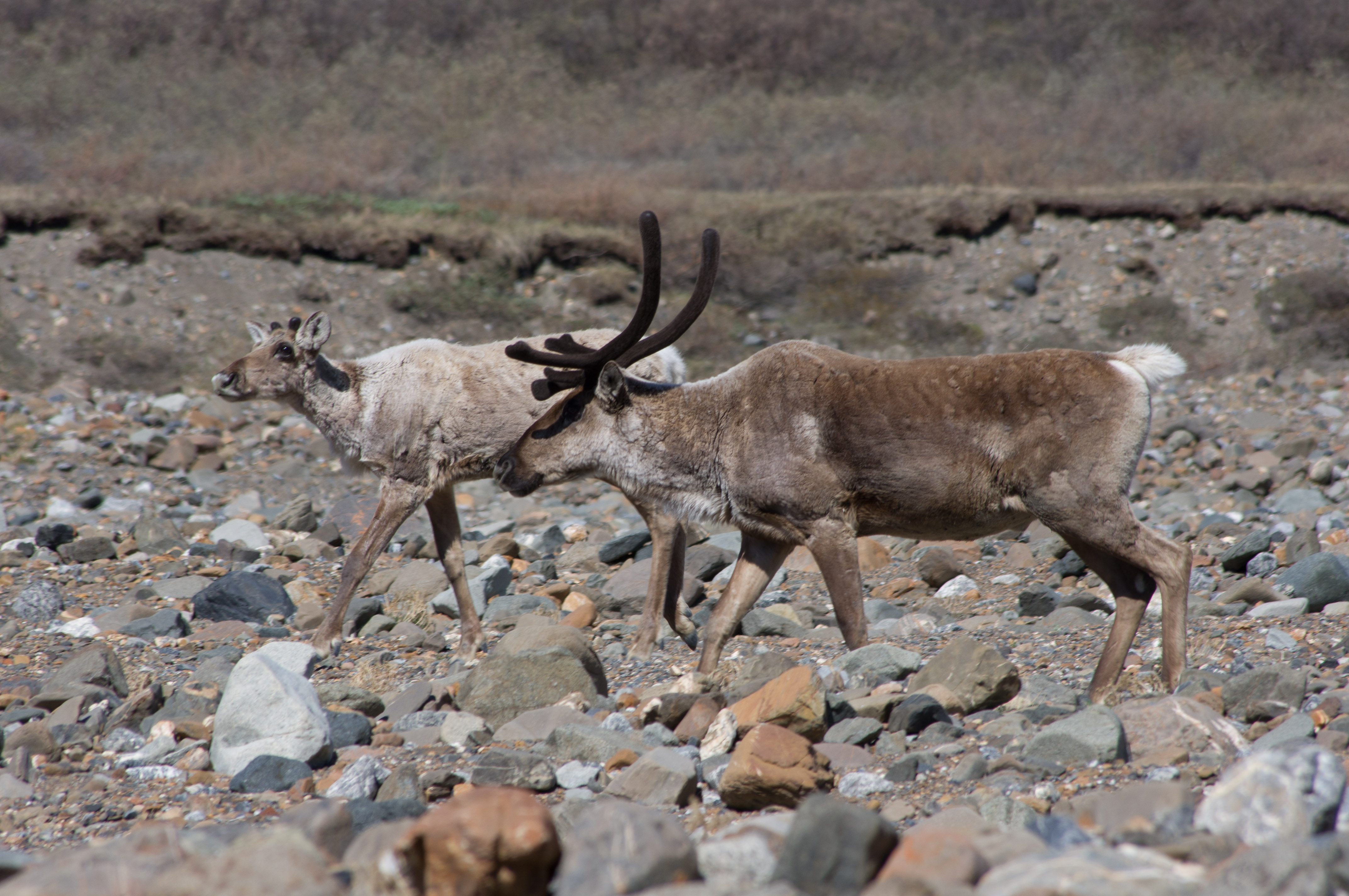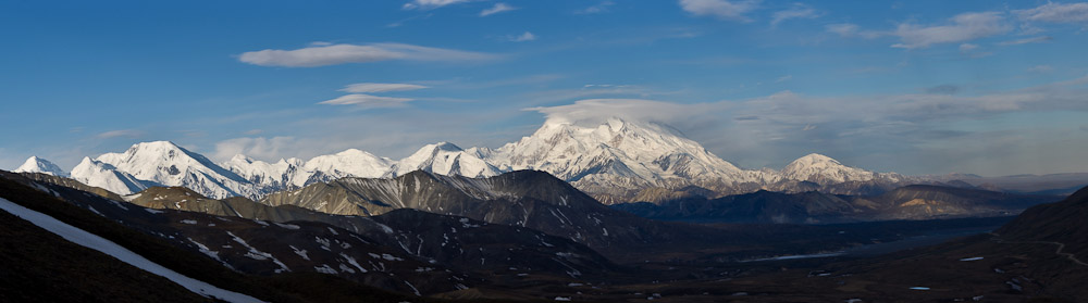 The next morning we left Ashley and drove the 5-6 hours to Denali National Park. We got to the park around 2pm and went to the backcountry information center where we knew we had to watch a video on park rules and bear safety. We received our permit and bear resistant container and chose unit #10, Toklat River – the farthest point the bus could take us this early in the season. The bus ride was 3 hours to Toklat and was great with occasional potty breaks, photo opportunities and narration by the driver. We saw a moose in the road,caribou herds, and dall sheep. We also got many great views of Mt. McKinley. The driver said only 30% of the time the peak is viewable because of cloud cover, so we felt pretty lucky.
